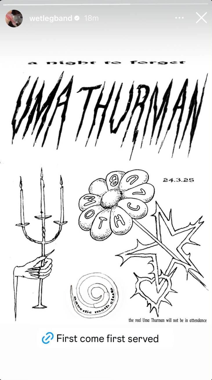 Le groupe de l'île de Wight semble jouer au magasin Green Door à Brighton ce soir (23 mars) et au Moth Club de la capitale demain (24 mars) sous le pseudonyme Uma Thurman, bien qu'ils aient plaisanté en disant que le vrai acteur «ne serait pas présent».